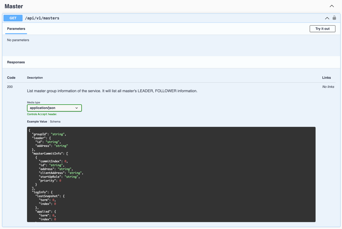 masterCommitInfofield’s size in the response. - Check that the commit index of the current active Masters is consistent by checking the