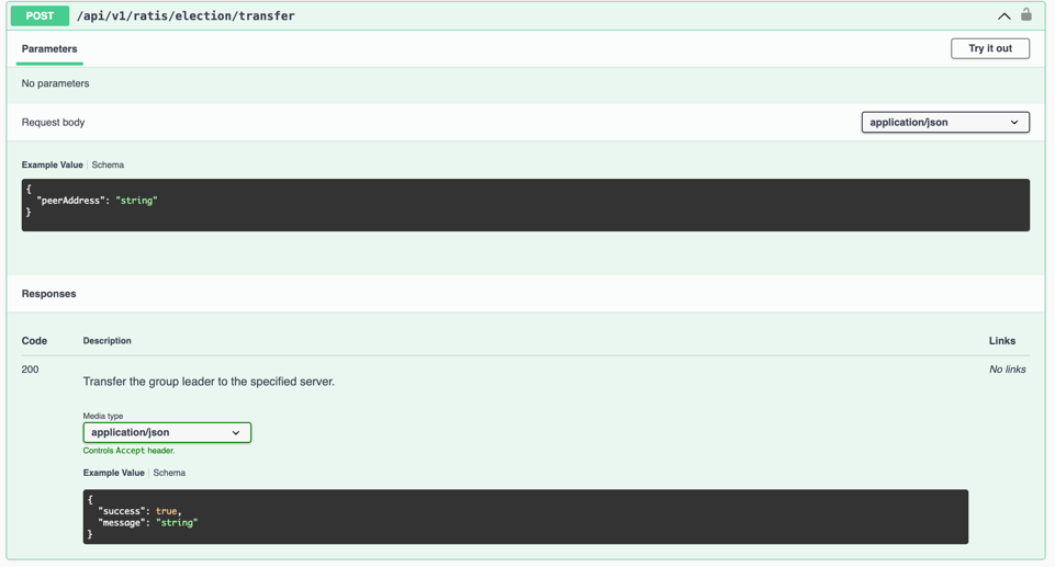 You can also trigger a Master failover separately by calling POST /api/v1/ratis/election/transfer to transfer the leader to a specified Master.