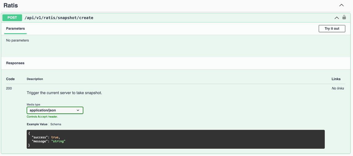 Create a snapshot by calling POST /api/v1/ratis/snapshot/create.