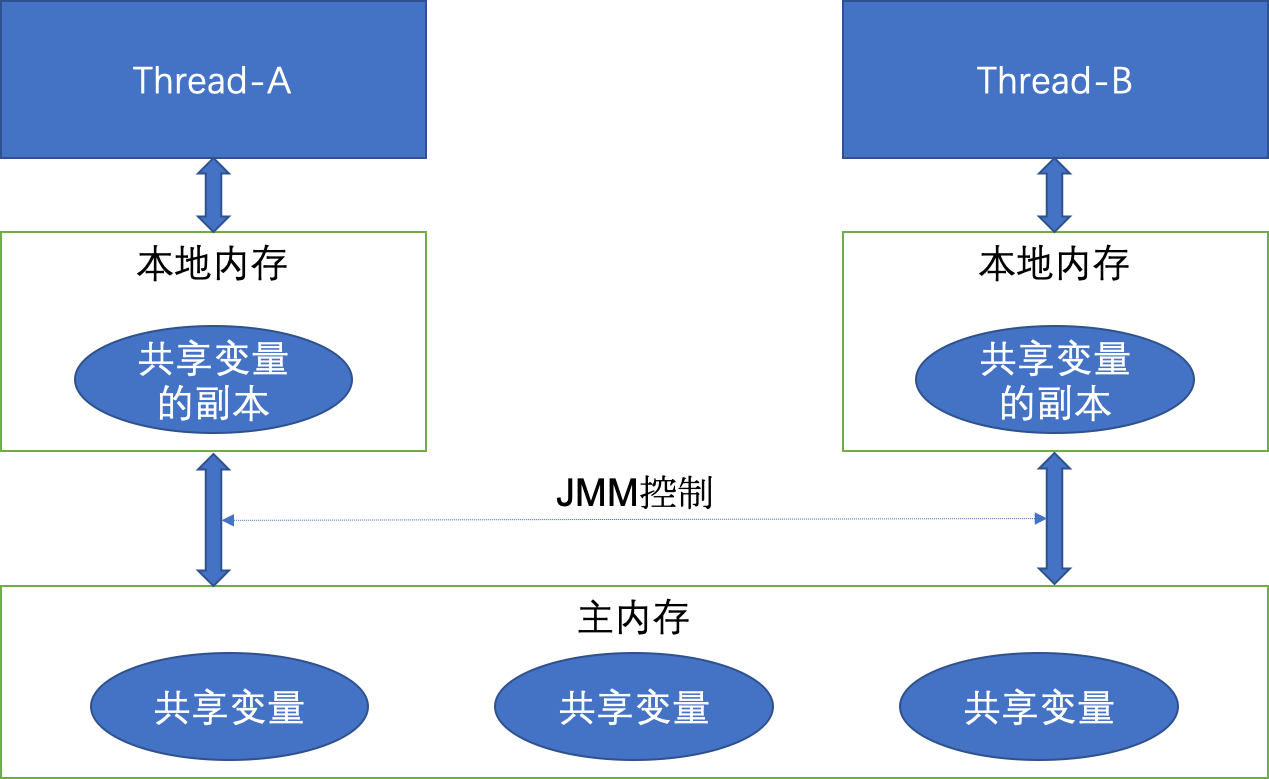 本地内存是JMM的一个抽象概念,并不真实存在。它涵盖了缓存,写缓冲区,寄存器以及其他的硬件和编译器优化。