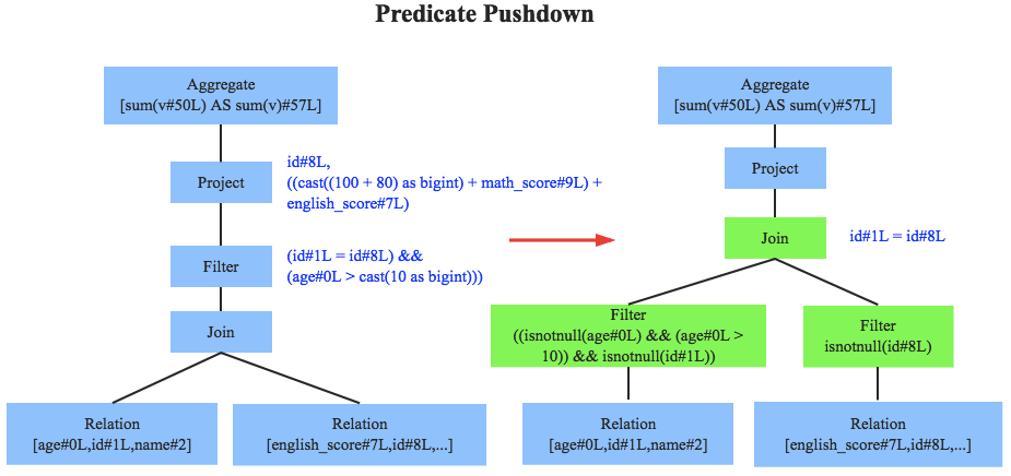 - 使用 optimizer 对 resolved LogicalPlan 进行优化, 生成 optimized LogicalPlan;