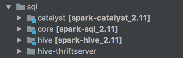 spark sql是 apache spark的其中一个模块,主要用于进行结构化数据的处理。spark sql的底层执行还是调用rdd,在之前的文章中提过rdd的执行流程,因此本文主要讲解一下从sql到底层rdd的对接。通过观察spark sql 模块的源码,源码分为四个部分,如下图。